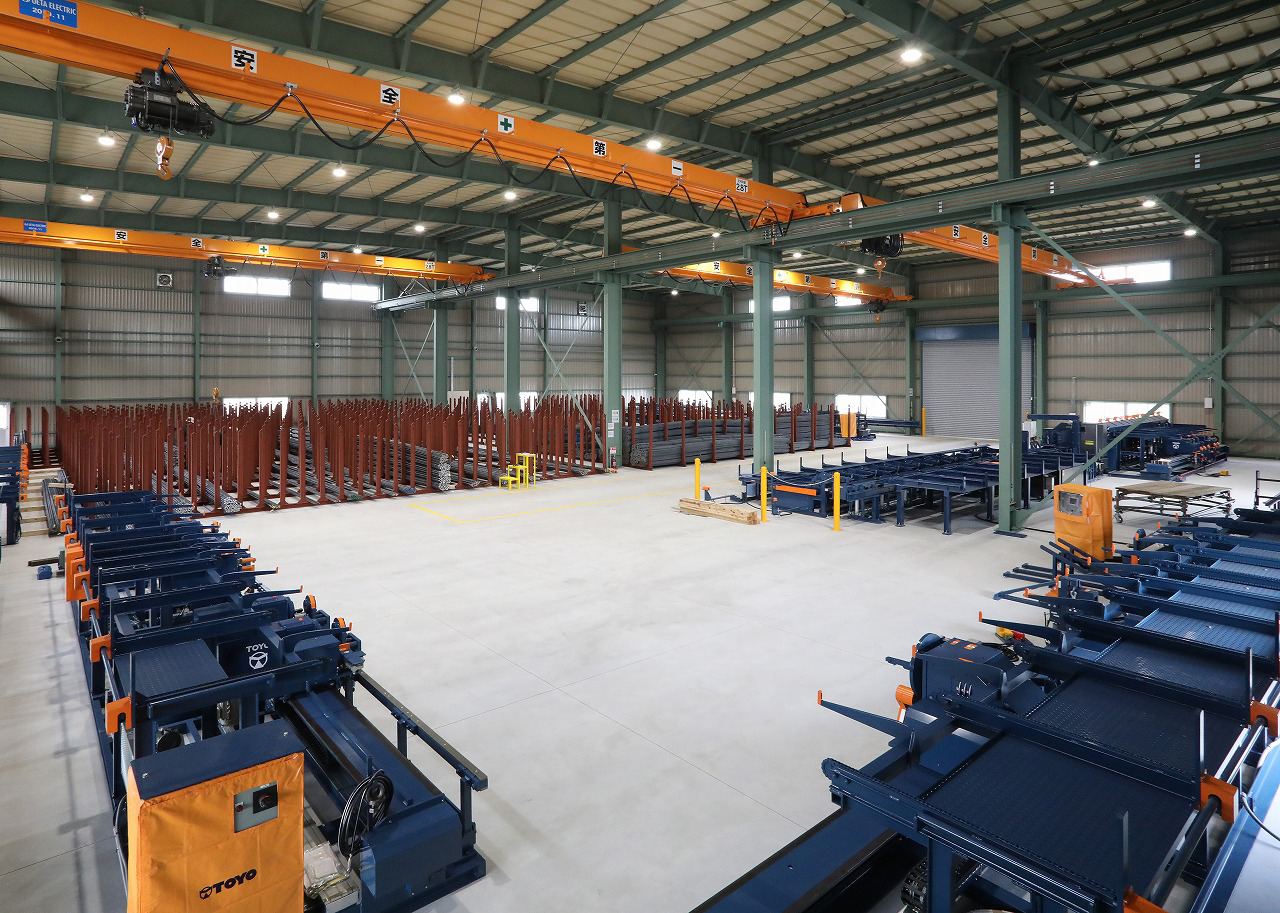まだ当社にしかない日本で初導入の切断機をはじめ、最新機器がずらりと並ぶ自慢の工場には、国内はもちろん海外からも見学に来られます。